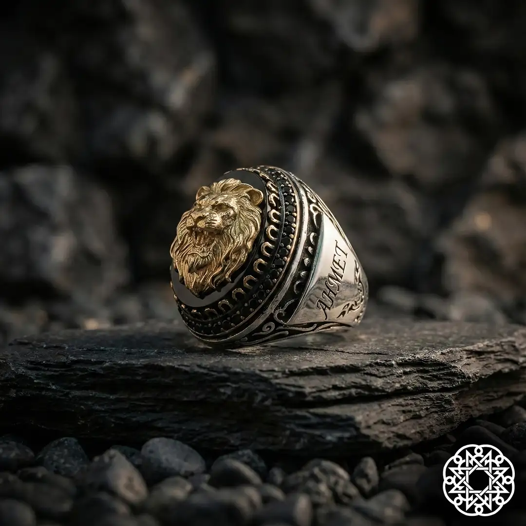 Aslanın temsil ettiği kudret, cesaret ve liderlik; kişiye özel işlenen isim ile birleşerek yüzüğü eşsiz bir kimliğe dönüştürür.