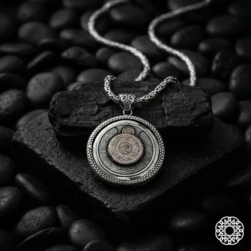 Ayet’el Kürsî – İnşirah Sûresi & Esmâü’l Hüsnâ Dönerli Gümüş Kolye Modeli – Kalbe Ferahlık, Ruha İlahi Koruma