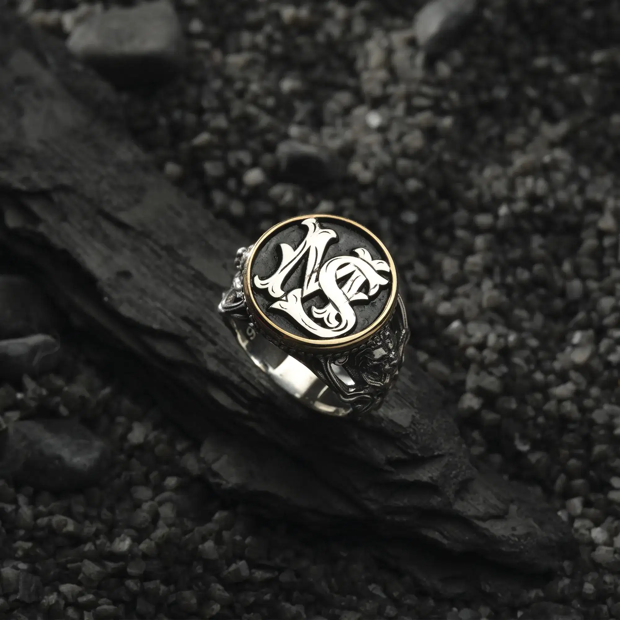 Harfli Aslanlı Gümüş Erkek Yüzük Modeli