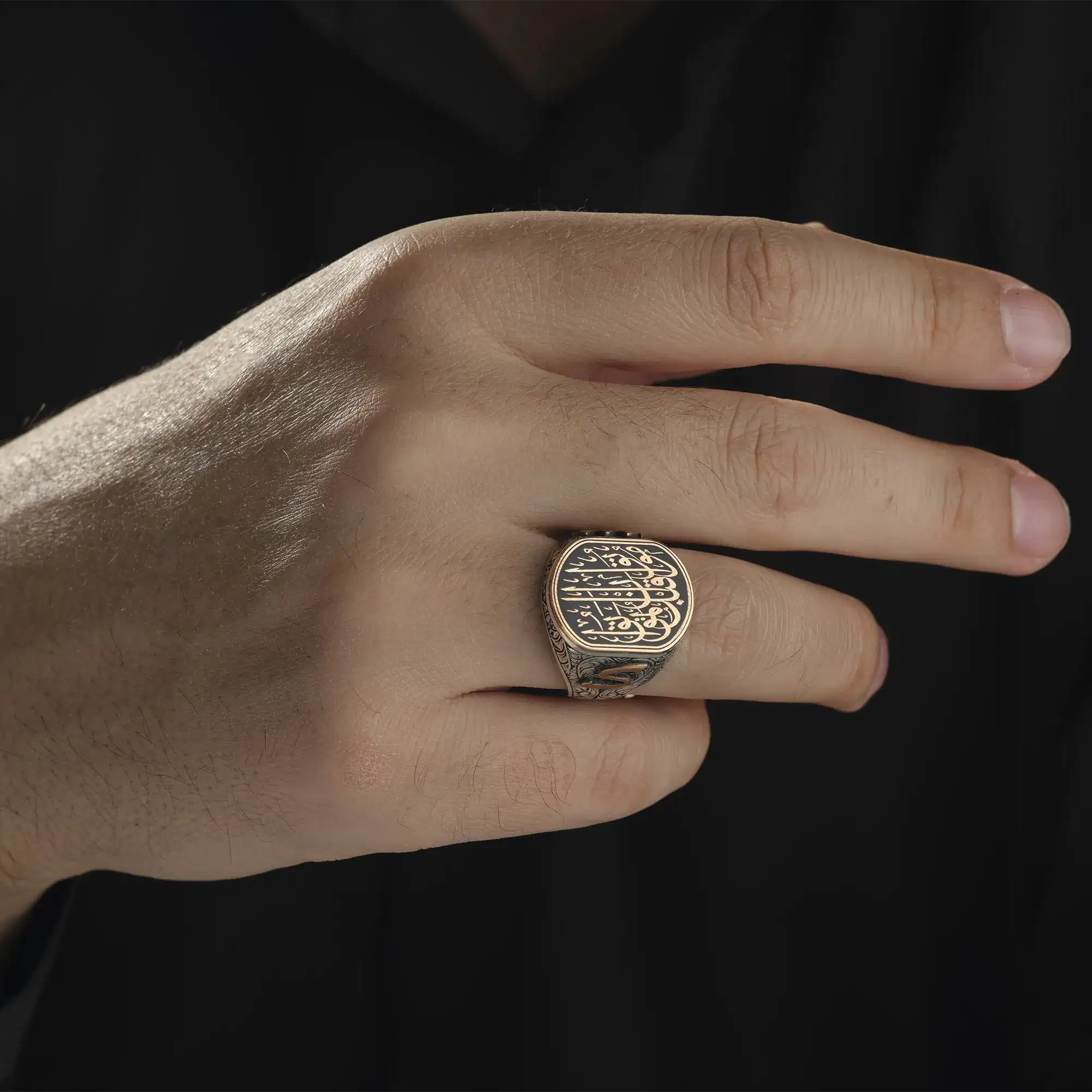 925 ayar gümüşten özenle üretilen Hiç Olmak Mûtû Kable En-Temûtû Gümüş Erkek Yüzük, derin tasavvufi anlamı ve sade şıklığıyla dikkat çeker. Yüzüğün üzerine “Mûtû kable en-temûtû” (Ölmeden evvel ölünüz) sözü zarif bir işçilikle işlenmiştir. Bu ifade, nefsin terbiyesini, dünyaya bağlılıktan sıyrılmayı ve manevî olgunluğu simgeler. Yüzüğün yan kısımlarına ise kişinin baş harfleri eklenerek kişisel bir anlam kazandırılır. Gümüşün parlak dokusu ve hat yazısının estetik uyumu, yüzüğü hem anlamlı hem de zarif bir takı haline getirir. Grande Amor Kuyumculuk’un el işçiliğiyle hazırlanan bu özel model, inancını, tevazusunu ve içsel yolculuğunu simgelemek isteyen erkekler için mükemmel bir tercihtir.