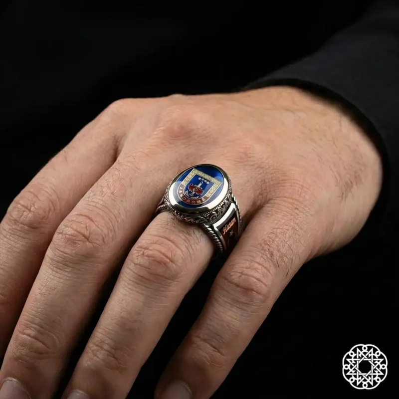 Yüzük üzerine işlenen kişiye özel isim, lazer veya gravür tekniğiyle kalıcı ve okunaklı biçimde uygulanır. Bu detay, yüzüğü tamamen sahibine ait kılar; görev bilincini kişisel bir imzayla bütünleştirir. Aynı zamanda anlamlı ve güçlü bir hediye seçeneği sunar.