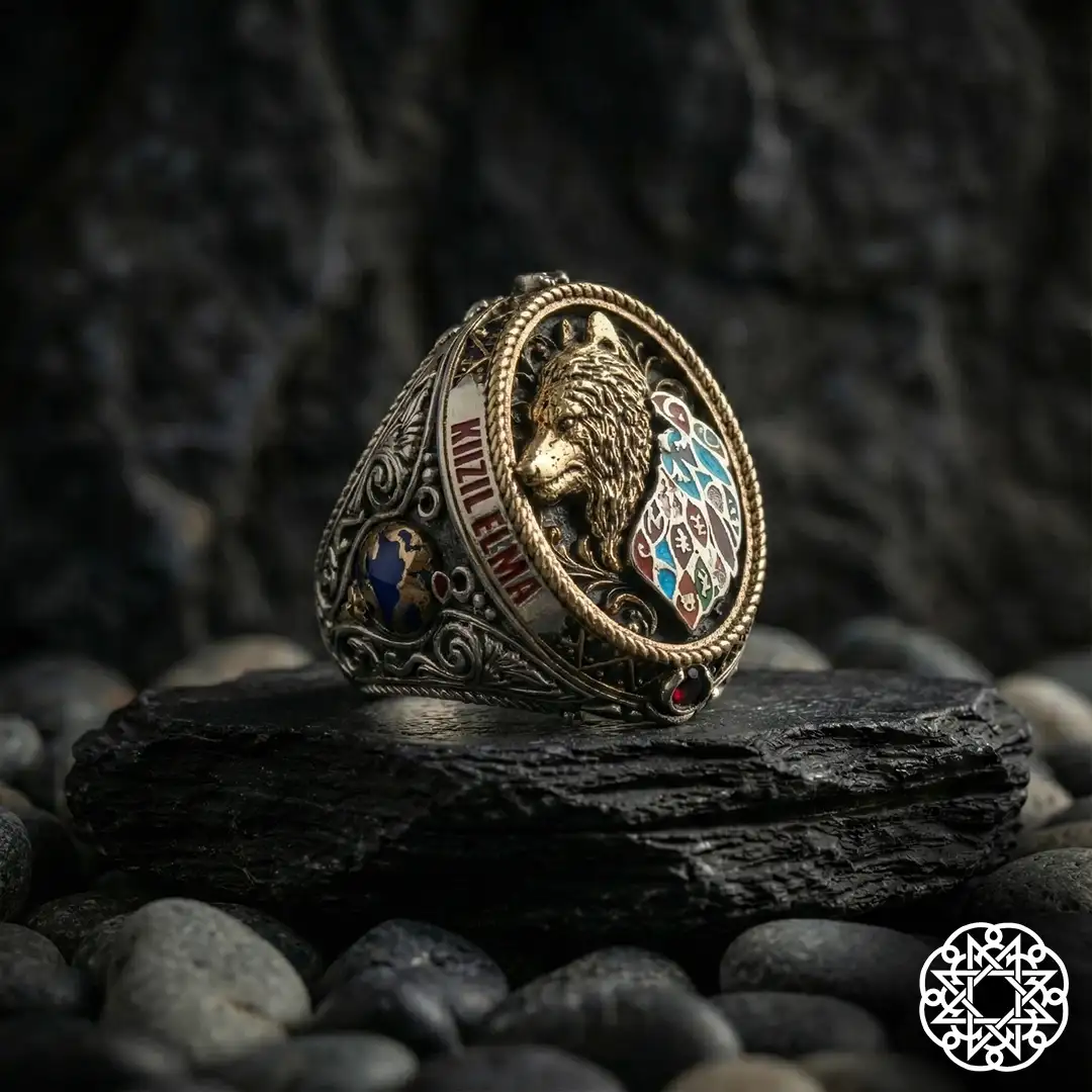 Yüzüğün merkezinde yer alan kurt, Türk kültüründe rehberliği, cesareti, asaleti ve bağımsız ruhu temsil eder.
